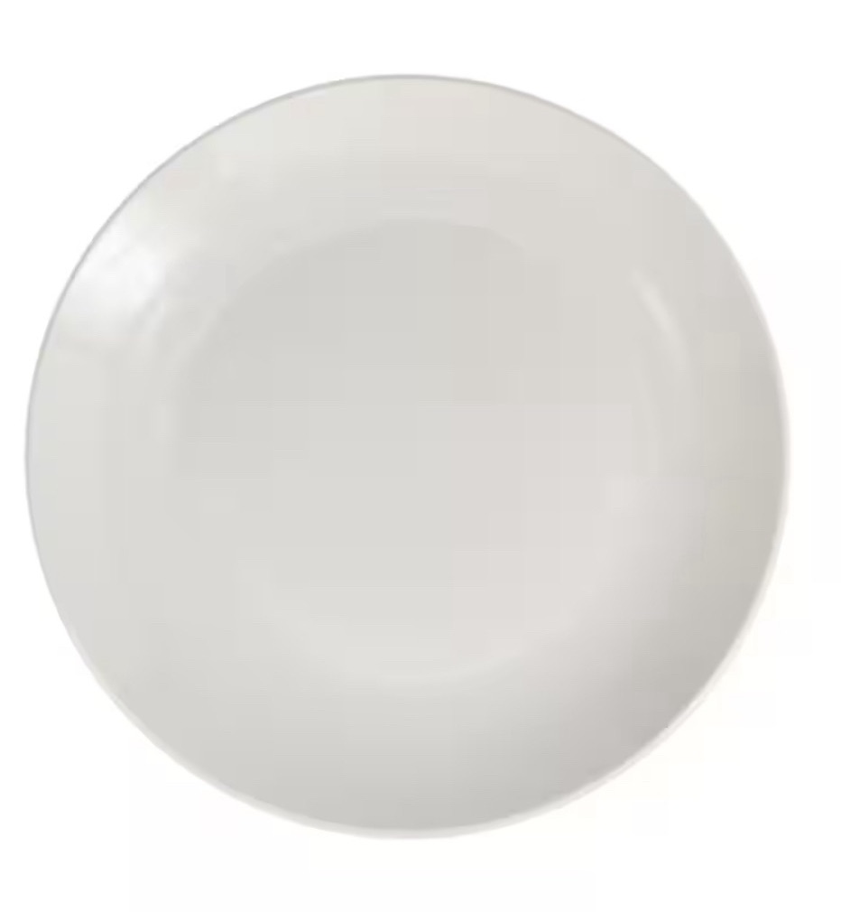 The picture on the left is a plain white plate for $1.25 each at Dollar Tree, and the plates on the right are $28 for a set of 4.