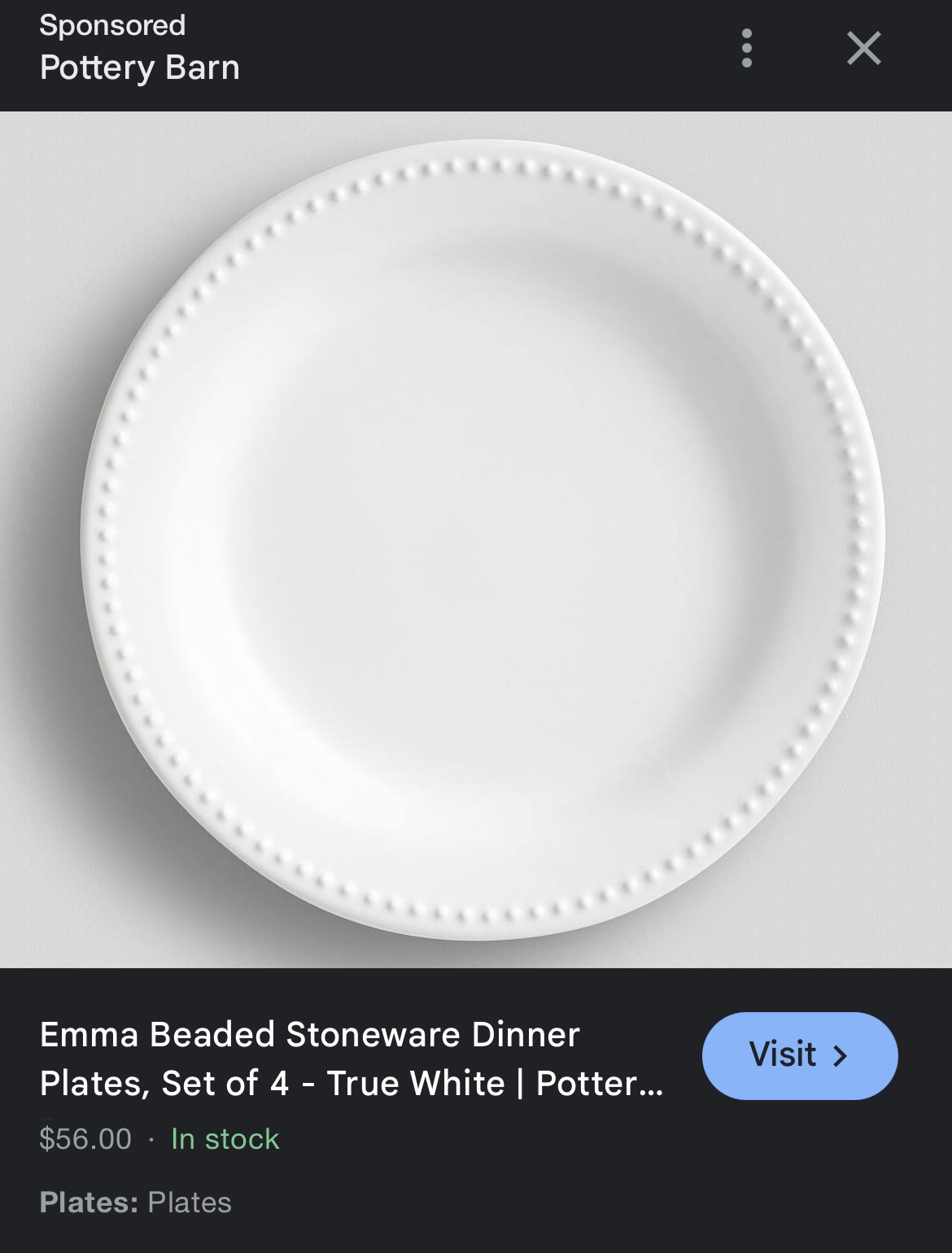 Beaded Edge dishes at Pottery Barn vs Dollar Tree