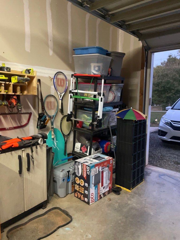 Our garage is really home to too much stuff, but until we get our garage attic finished, we will have to find a way to make it all work.