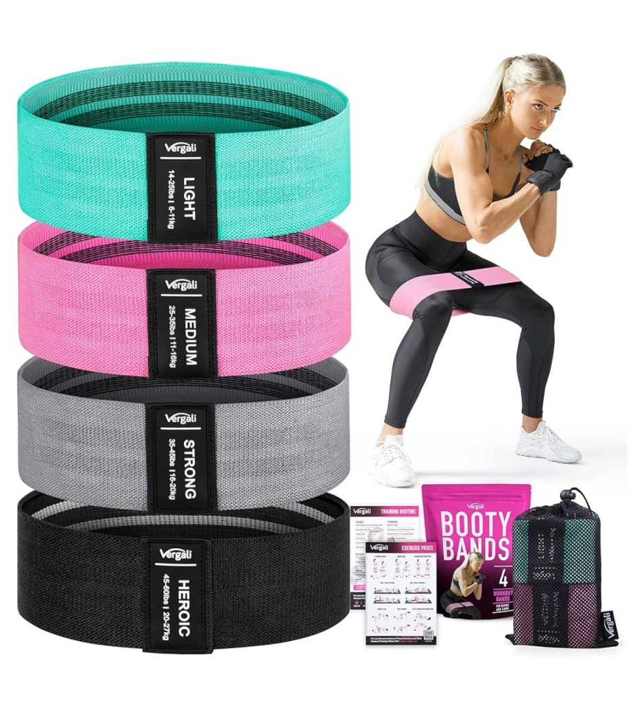 These booty bands come in a pack of four and are available in different colors. They’ll fit in your bag, your carry on, or even your purse. Each band is a different resistance strength. I love these so much I bought a second set.