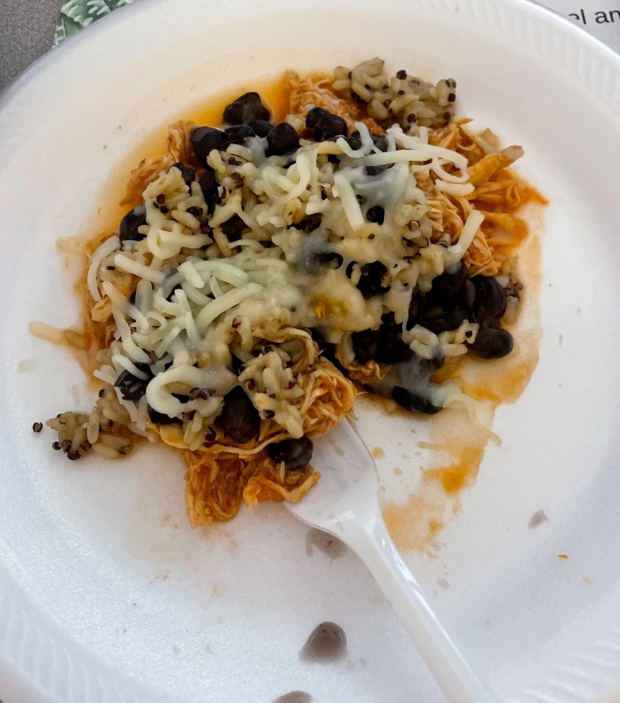 If you love Chipotle, you probably are well aware of how expensive it can be. We also live in a small town, so the nearest Chipotle is a half hour away. We like to throw chicken, salsa, and a little seasoning in our slow cooker and cook it on high for four hours. Then, we add black beans, queso, and corn. You can eat this with chips or in a tortilla, or you can eat it alone for a lower carb option.